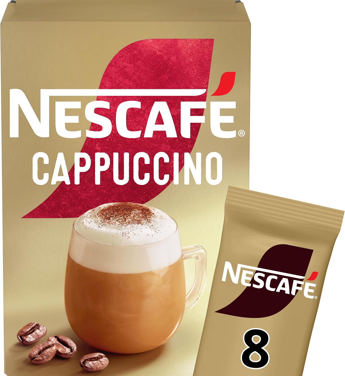 NESCAFÉ Cappuccino Instant Coffee 8 x 15.5g Sachets, 100% Responsibly Sourced Coffee (Pack of 1)